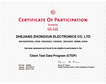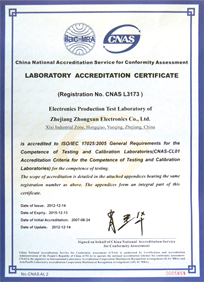 實驗室于2000年籌備建設(shè),2002年取得美國UL1054 WTDP認可,2007年8月取得中國合格評定委員會(CNAS)認可,2009年g月獲得美國UL公司的UL61058標準WTDP認可,2011年獲得德國萊TUV大中華區(qū)開關(guān)行業(yè)首張WMT證書,2012年9月獲得美國UL中國大陸區(qū)開關(guān)行業(yè)首張CTDP證書。